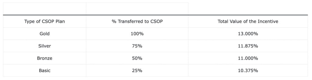 As an added incentive, EFC contributes an incremental bonus on the amount invested by the borrower into CSOP, this means the more the borrower invests into CSOP the larger the total value of the incentive.
